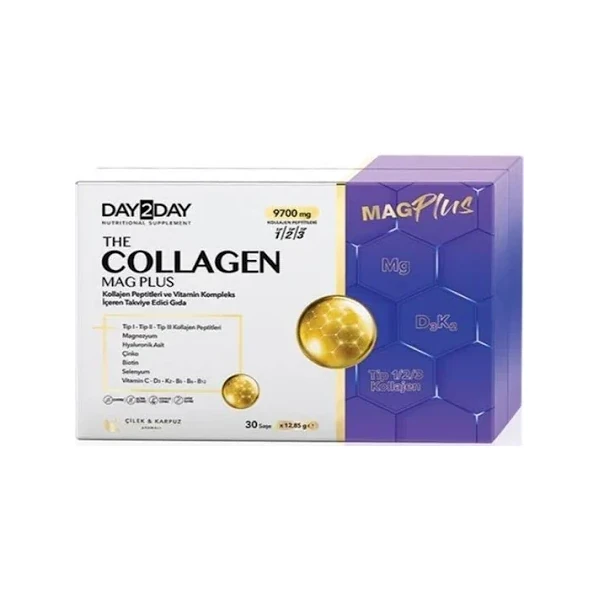 Day2Day Kollagen Mag Plus Nahrungsergänzung – 30 Sachets ist ein Nahrungsergänzungsmittel, das entwickelt wurde, um das allgemeine Wohlbefinden durch eine Mischung aus essentiellen Nährstoffen zu unterstützen. Dieses Produkt kombiniert Kollagenpeptide, Vitamine und Mineralien, um die Hautelastizität zu verbessern, die Gelenkgesundheit zu fördern und die allgemeine Vitalität zu unterstützen. Mit einem Fokus auf hochwertige Zutaten richtet sich dieses Supplement an Personen, die ihre tägliche Gesundheitsroutine in einem praktischen, leicht konsumierbaren Format verbessern möchten.