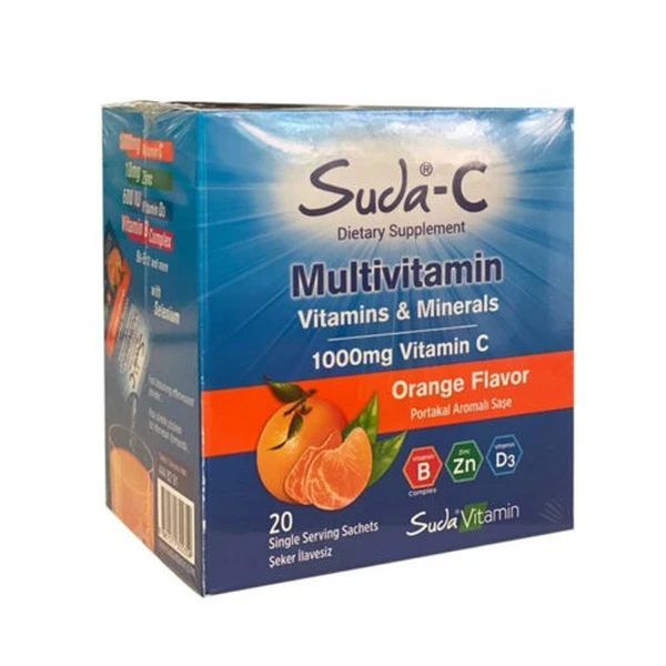 Suda Vitamin Suda-C Multivitamin Sachets – 20 Essential Packs is a comprehensive solution for daily vitamin and mineral intake. Designed for individuals seeking an efficient way to meet their nutritional needs, these sachets deliver essential nutrients conveniently and effectively. With a focus on enhancing overall health, they provide a practical option for integrating multivitamins into daily routines.