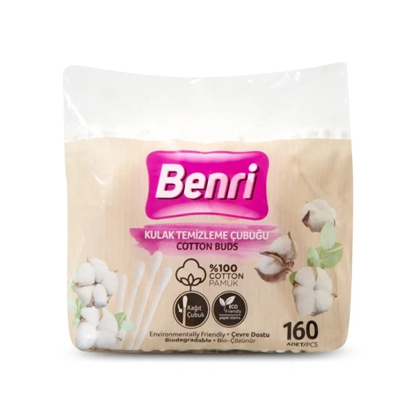 Benri Biodegradable Cotton Ear Swabs – 160 Pcs in Bag