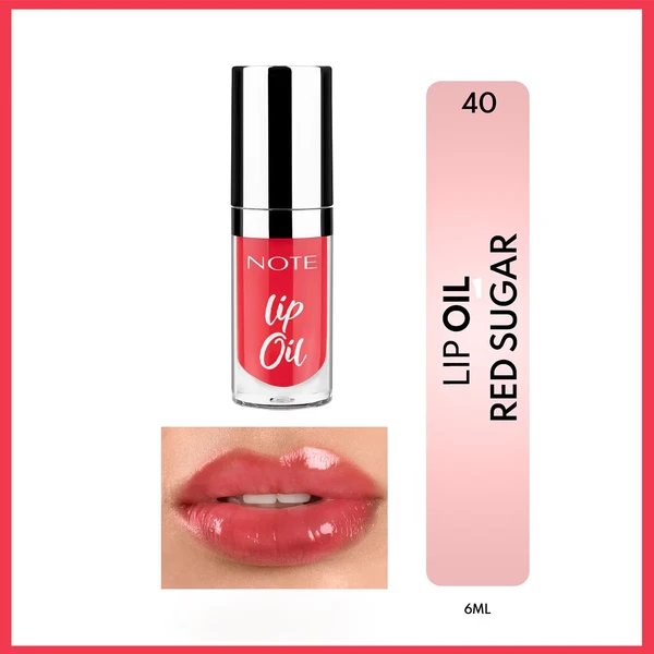 Note Lip Oil 40 Sugar Red can be used alone for a natural, glossy look or layered over lipstick for added shine and moisture. It is suitable for both casual and evening makeup looks.