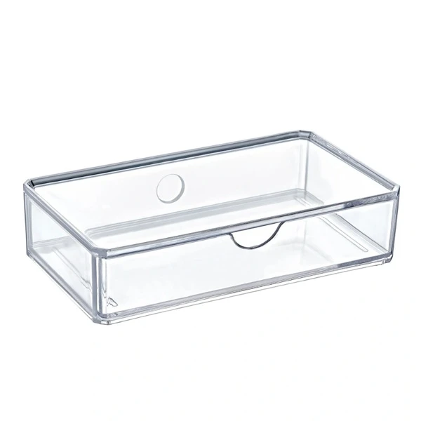This small drawer module is suitable for various settings, including home offices, bedrooms, and bathrooms. Its clear design allows for easy visibility of contents, making it efficient for organizing items in any room.