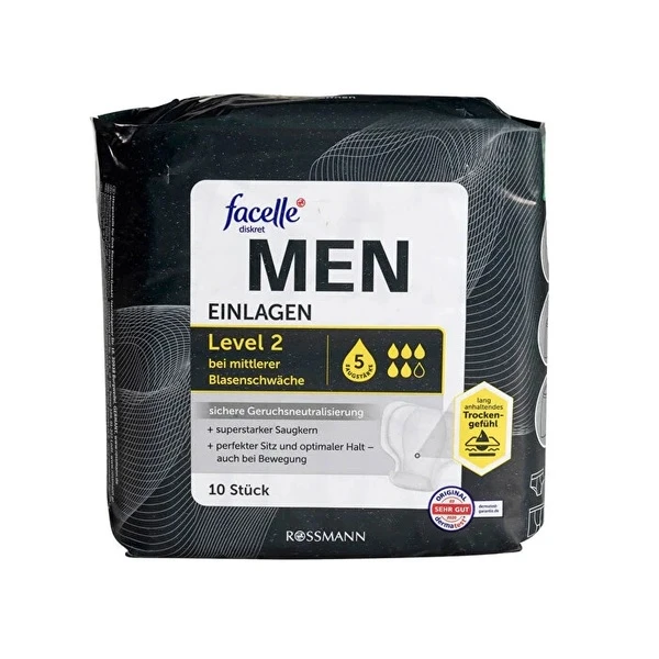 Facelle Discreet Men Bladder Pads – 10 Super Absorbent Inserts provide maximum security and discretion for men experiencing bladder concerns. Designed with comfort and practicality in mind, these pads ensure peace of mind for daily activities. Their effective construction allows for reliable protection without compromising on comfort.