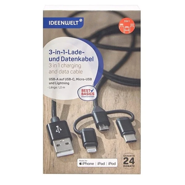 Ideenwelt Data Transfer and Charging Cable 3in1 1 pcs