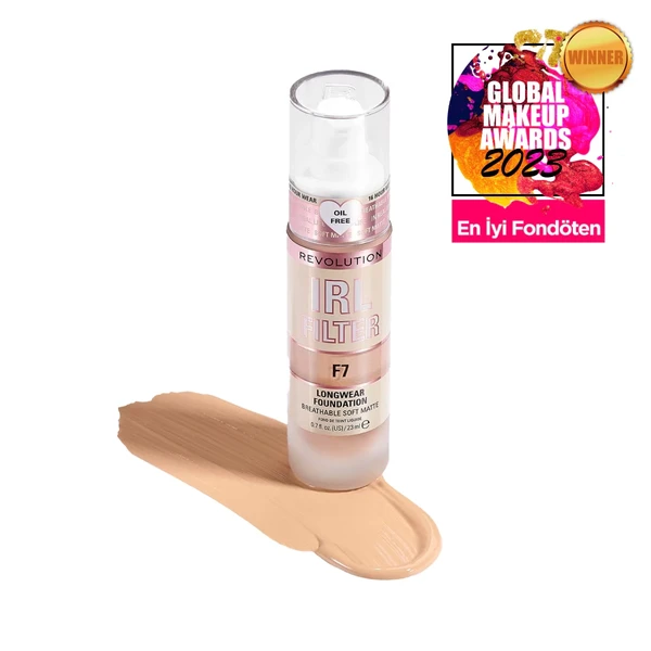 Before applying the foundation, cleanse the skin and apply a moisturizer. Use the pump to dispense small dots of Revolution IRL Filter Foundation F7 directly onto your face. Blend the product using a makeup sponge or brush for an even finish. Set your makeup with powder for optimal wear throughout the day.
