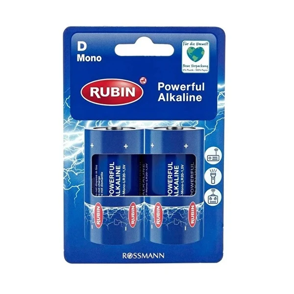 Rubin Mono D Alkaline Battery LR20 2 Pack