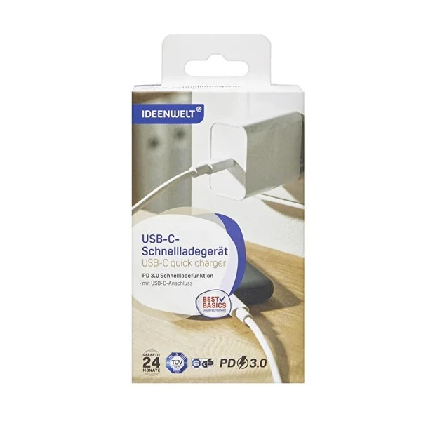 Simply connect the Ideenwelt USB-C Fast Charger Adapter to a wall outlet or power strip, then attach your device using a compatible USB-C cable. The adapter will automatically detect the optimal charging speed for your device.