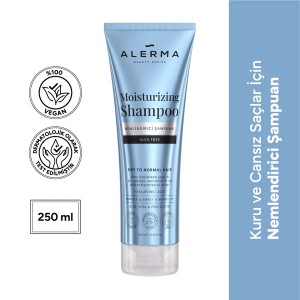 Alerma Moisturizing Shampoo 250ml – Sulfate-Free, Vegan, Hydrating is designed to provide effective hydration for dry and lifeless hair. This sulfate-free shampoo helps restore moisture, making hair soft and voluminous. Its specially formulated ingredients work together to address common hair concerns, ensuring a healthy and nourished appearance.
