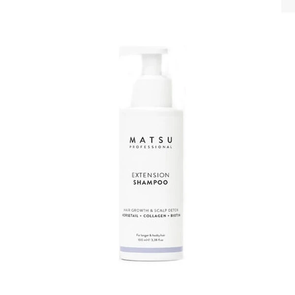 Matsu Travel Size Extension Shampoo 100ml – Nourishing Care is a specialized hair care product designed to promote faster hair growth and deeply nourish hair strands. This travel-size shampoo, with its scientifically crafted formula, incorporates powerful ingredients like horsetail, collagen, biotin, ginseng, and aloe vera, making it an essential addition to your hair care routine. Ideal for all hair types, this shampoo helps to provide comprehensive care, ensuring that your hair receives the attention it deserves.