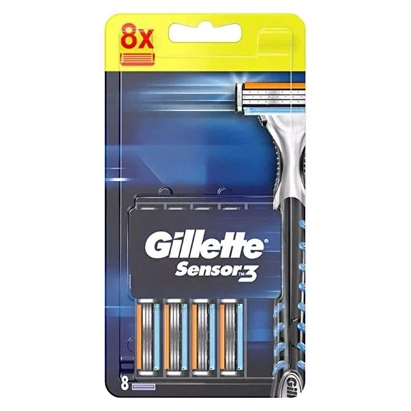 Gillette Sensor3 Razor Blades 8-Pack – Smooth Shave, Lubricating Strip is designed to provide a precise and comfortable shaving experience. These razor blades feature three blades and a lubricating strip that helps the razor glide smoothly over the skin. The design focuses on reducing irritation while ensuring a close shave, making it suitable for everyday grooming needs.