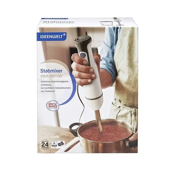 Ideenwelt 600W Hand Blender with Turbo & Stainless Steel Head is a powerful kitchen appliance designed for efficient blending and mixing tasks. This hand blender is particularly suited for those who value convenience and versatility in food preparation. With a robust 600-watt motor and a stainless steel head, it easily tackles a wide range of ingredients, making it an essential tool for any home chef.