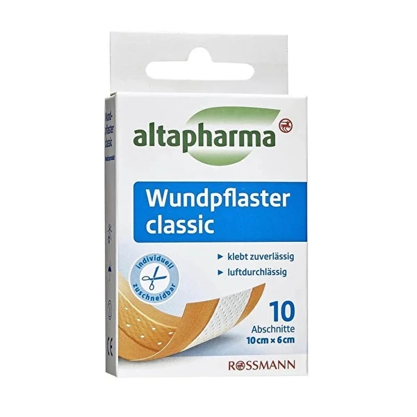 Altapharma Classic Band-Aid, Hypoallergenic Wound Care, 10 Pcs is an essential addition to any first aid kit, providing effective protection and care for minor injuries.