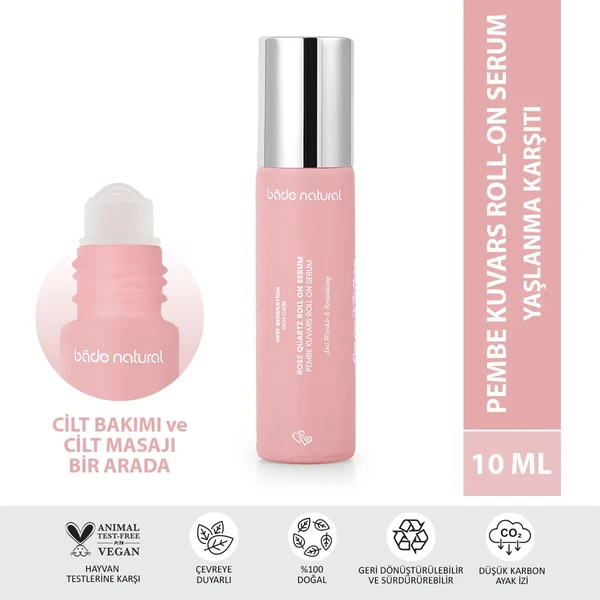 Bade Natural Rose Quartz Serum Roll-On 10 ml – Antioxidant & Vegan is a skincare product designed to enhance your facial care routine with the benefits of natural ingredients and the properties of real rose quartz. This serum combines the power of antioxidants with soothing botanical elements to help diminish the visible signs of aging, promote skin elasticity, and enhance overall skin tone.