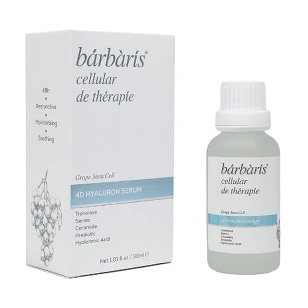 Barbaris 4D Hyaluronic Serum 30ml – Intense Hydration & Rejuvenation is a scientifically crafted skincare product designed to deliver deep hydration and rejuvenation to the skin. This serum combines a unique blend of four types of hyaluronic acid with trehalose and ceramide, providing targeted anti-aging benefits while also protecting the skin from environmental stressors. Its innovative formulation aims to enhance skin luminosity and overall texture.