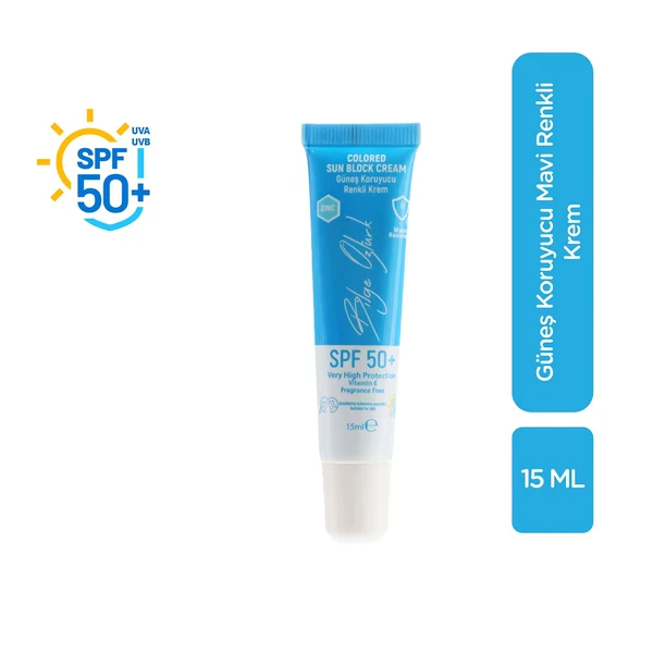 Bilge Ozturk SPF 50 Tinted Sunscreen Cream 15ml – Blue Color is a high-performance sunscreen designed to provide broad-spectrum protection against harmful UVA and UVB rays. Enriched with castor oil and vitamin E, this tinted cream not only shields the skin from sun damage but also moisturizes and nourishes, making it suitable for daily use throughout the year. Whether in summer or winter, this sunscreen ensures that your skin remains protected and hydrated.