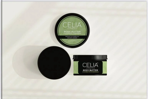 Celia Green Tea and Lemongrass Body Butter with Shea and Cocoa 300g is a nourishing body butter designed to deeply hydrate and protect the skin. Formulated with a blend of natural ingredients, it aims to restore skin softness and improve overall skin health. This product is essential for anyone looking to combat dryness and signs of aging while maintaining an even skin tone.