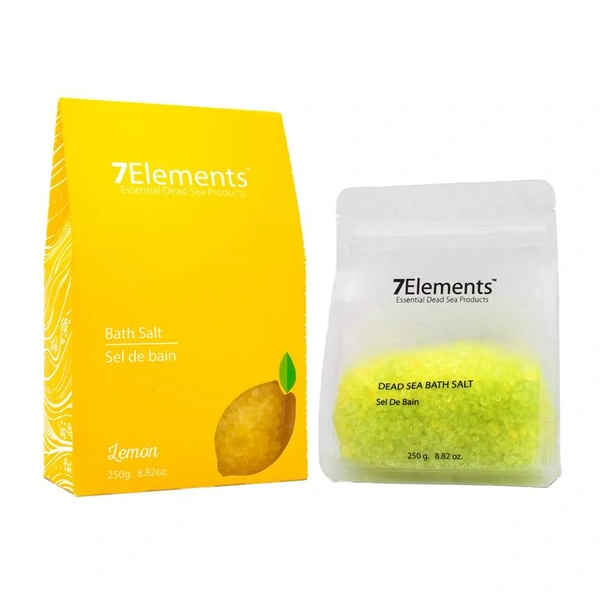 Dead Sea Bath Salt with Lemon Scent from 7 Elements offers a premium bathing experience sourced from the lowest point on Earth, the Dead Sea. This product is designed to promote skin purification, relieve tension, and rejuvenate skin cells, making it ideal for those seeking natural and effective body care solutions.