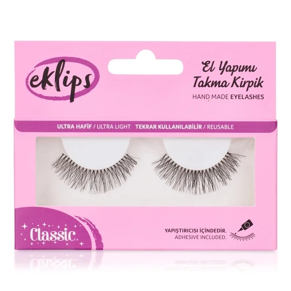 Eklips Classic Handmade False Eyelashes are expertly designed to enhance the beauty of the eyes while providing a natural look. These false eyelashes are crafted to be ultra-lightweight and suitable for all eye types, making them a versatile addition to any makeup routine. The handmade construction ensures a quality product that combines both aesthetics and comfort, allowing for effortless wear throughout the day.