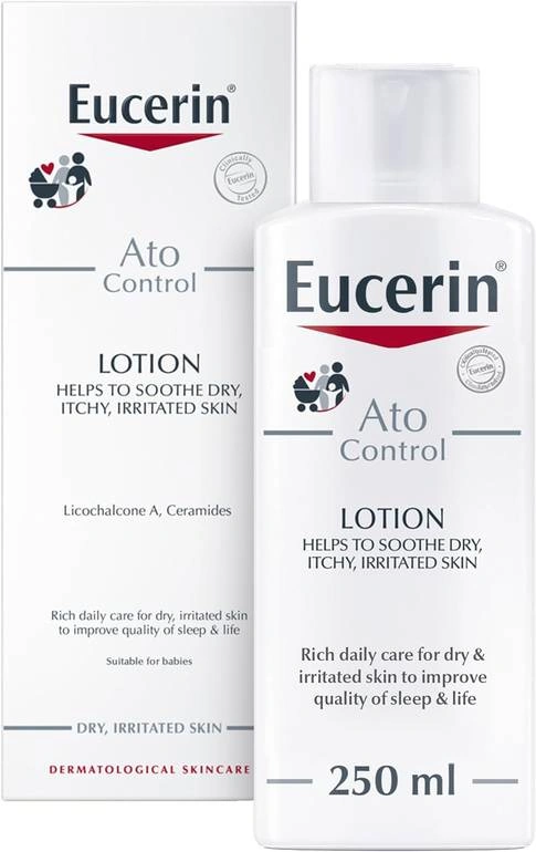 Clinically Proven Tolerance: Eucerin AtopiControl Body Care Lotion has been clinically and dermatologically tested for compatibility with atopic skin, ensuring safety and efficacy for both adults and children.