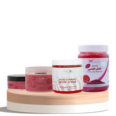 Fassi Akr Box Offer for Supply and Brightening – 4 Products Product Overview The Fassi Akr Box Offer for Supply and Brightening includes a curated selection of four high-quality products designed to enhance skin appearance and hydration. Each item is formulated with beneficial ingredients that target various skin concerns, such as dullness and dryness. This collection is ideal for individuals seeking to improve their skin tone while providing essential moisture and care. Key Benefits/Features Foot Moisturizer with Fassi Akr (50 ml) This foot moisturizer is specifically designed to hydrate and soften dry, cracked skin on the feet. The inclusion of Fassi Akr ingredients helps to brighten the skin while providing deep nourishment, ensuring feet feel smooth and refreshed. Pomegranate Body Butter by Dido (600 grams) The pomegranate body butter delivers intense hydration, making it suitable for all skin types. Its rich, creamy texture absorbs quickly into the skin, providing long-lasting moisture and improving skin elasticity. This product also contributes to a brighter skin tone with consistent use. Foaming Sugar Scrub by Dido (600 grams) This exfoliating scrub is formulated to gently remove dead skin cells, revealing smoother and brighter skin underneath. The foaming action ensures a thorough cleanse while still being gentle on the skin, making it effective for regular use. This scrub not only purifies but also prepares the skin for better absorption of subsequent skincare products. Fassi Akr Soap by Kuwait Shop (500 grams) The Fassi Akr soap is designed to cleanse the skin while providing brightening benefits. Its unique formulation helps to even out skin tone and remove impurities without stripping the skin of its natural moisture. This soap is suitable for daily use on both the face and body. Product Details – Fassi Akr Foot Moisturizer: 50 ml – Dido Pomegranate Body Butter: 600 grams – Dido Foaming Sugar Scrub: 600 grams – Kuwait Shop Fassi Akr Soap: 500 grams