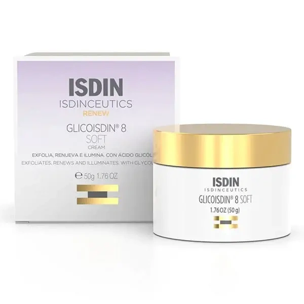 Glycolic Acid 8% Exfoliating Cream – Softening, Moisturizing, and Revitalizing for Dry and Normal Skin by Isdin, 50 grams is a targeted facial cream designed to gently exfoliate and refine skin texture. With a potent concentration of 3.2% free glycolic acid, this cream effectively removes dead skin cells to promote a smoother, more radiant complexion. Its formulation aims to diminish the appearance of expression lines and photo-aging wrinkles while enhancing skin hydration and elasticity.