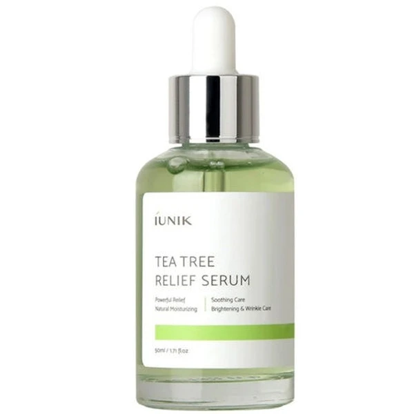 Iunik Tea Tree Relief Serum 50ml – Soothing Acne Treatment is a specialized skincare product designed to address acne-related concerns while soothing sensitive skin. This serum combines the effects of tea tree leaf extract and Centella Asiatica extract to provide a dual-action approach for those struggling with blemishes and uneven skin texture. The formula is lightweight and quickly absorbed, making it suitable for daily use to promote a clearer, more balanced complexion.