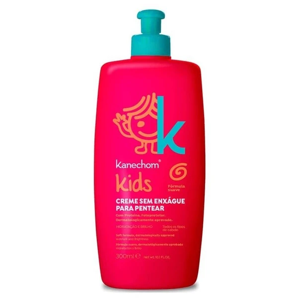 Kanechom Kids Creme Sem Enxague Para Pentar 300 ml is a specially formulated detangling cream designed to provide effortless hair care for children. This product addresses the common challenge of tangled hair, making grooming a smooth and enjoyable task for both children and parents. With a focus on nourishing delicate strands, this cream promotes healthy, manageable hair while ensuring a tear-free experience.