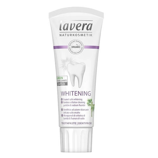 Apply a pea-sized amount of Lavera Natural Whitening Toothpaste to a toothbrush. Brush thoroughly for at least two minutes, covering all surfaces of the teeth, and then rinse well. For best results, use twice daily.
