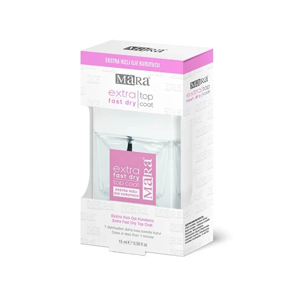 - Once the polish has been applied, apply one coat of Mara Extra Fast Nail Polish Dryer.