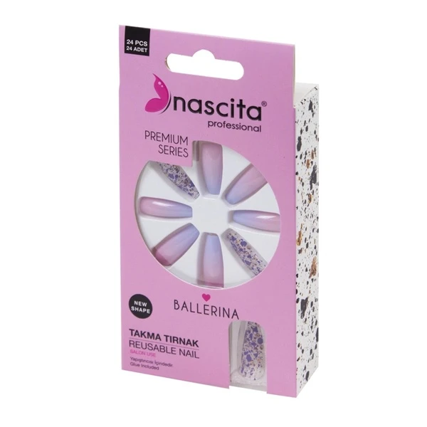 The Nascita Ballerina set includes 24 false nails in various sizes, allowing for customizable fitting on different nail shapes and sizes. This versatility ensures that every set can achieve a natural look and feel, providing a polished finish without the hassle of salon visits.
