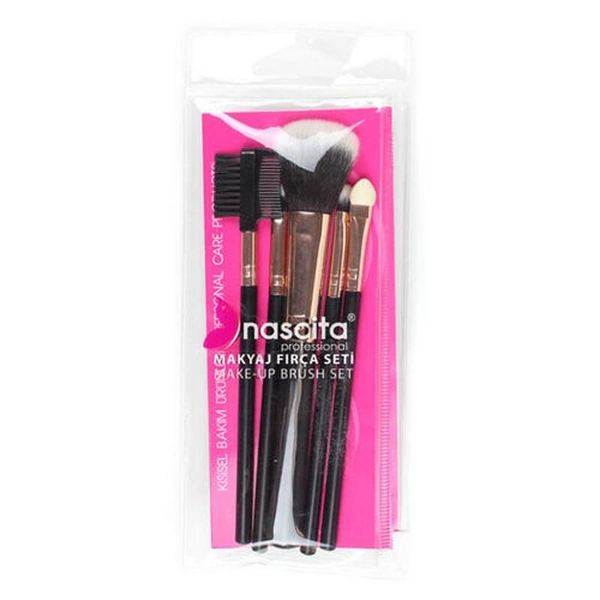 This is a comprehensive brush set designed to enhance makeup application. This set includes five essential brushes crafted specifically to deliver the perfect touch of color and precision for a flawless finish. Each brush is engineered to cater to different makeup needs, ensuring that every aspect of application is addressed effectively.