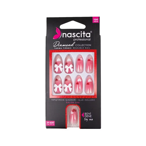 The Nascita false nails come with a simple application process. Users can achieve a salon-quality look at home by applying nail glue to their natural nails and pressing on the false nails for a secure fit. This straightforward method saves time and effort, making it accessible for anyone.