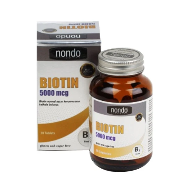 Nondo Vitamins Biotin 30 Capsules for Healthy Hair & Skin is a dietary supplement designed to promote healthier hair and skin. Each capsule is formulated with a high potency of biotin, a vital nutrient known for its role in supporting hair growth and skin health. This product is ideal for adults seeking to enhance their beauty and wellness routine through a simple and effective supplement.