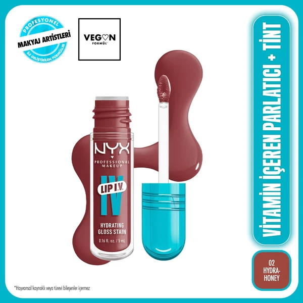 NYX Lip I.V. Vitamin-Infused Gloss & Tint – Long-Lasting Hydration is a versatile lip product that serves as both a gloss and a tint, providing exceptional hydration and color to the lips. With its vitamin-infused formula, this product addresses the need for lasting moisture while enhancing the natural beauty of the lips. It is suitable for all age groups and skin types, making it a practical choice for anyone looking to elevate their lip care routine.