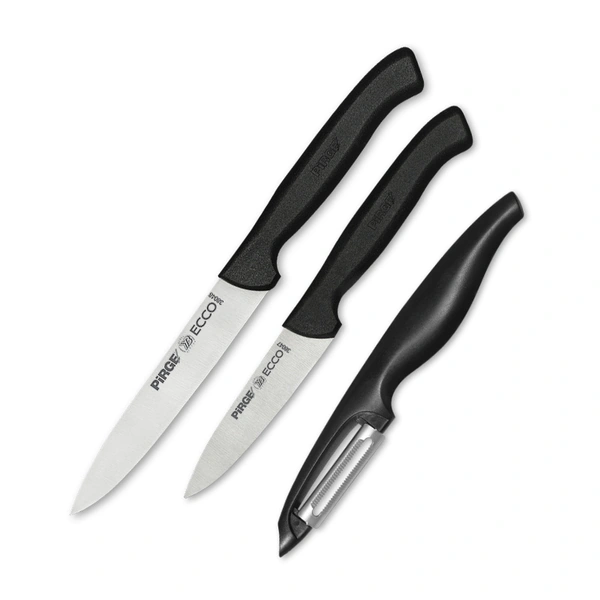 The Pirge Ecco Kitchen Set is made from high carbon stainless steel, a material known for its toughness and resistance to corrosion. This ensures that the tools maintain their sharpness and do not rust over time, providing long-lasting reliability for everyday use.