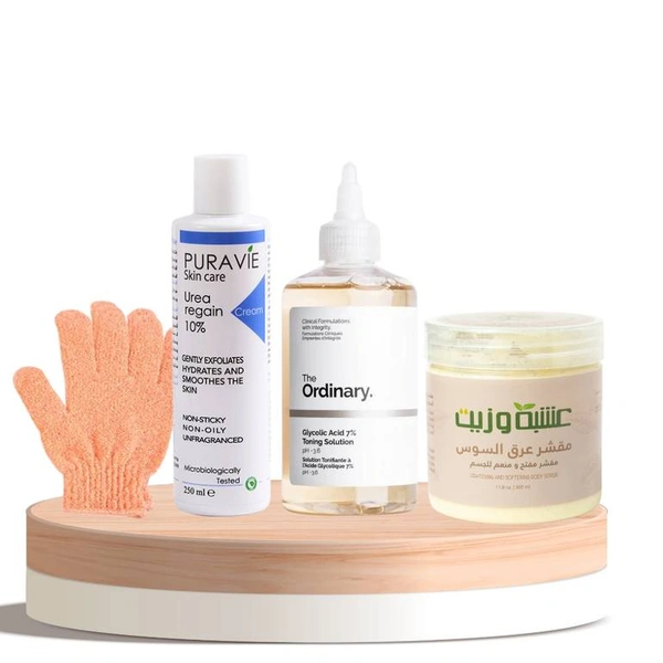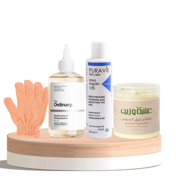 The Pore Treatment and Goosebumps Box Set is a comprehensive skincare solution designed to address the common concern of keratosis pilaris, also known as “chicken skin.” This set includes four carefully selected products that work synergistically to exfoliate, hydrate, and soften the skin, promoting a smoother and more even texture. Each product targets specific aspects of this condition, ensuring users achieve noticeable results with regular use.