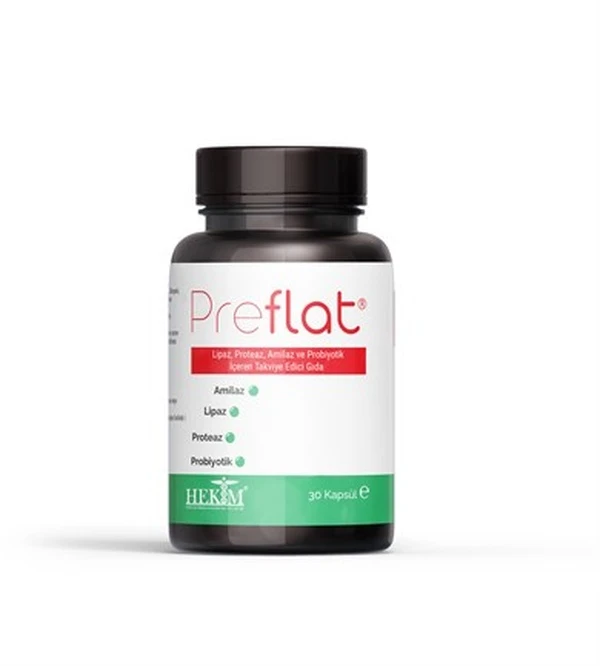 Preflat Enteric Capsules – Digestive Support & Enzyme Blend are specially formulated food supplements designed to enhance digestive health through a unique blend of enzymes and probiotics. Each capsule contains carefully selected active ingredients that work together to support the body’s natural digestive processes. These capsules are intended for adults who seek additional digestive support, particularly those experiencing discomfort related to food digestion.