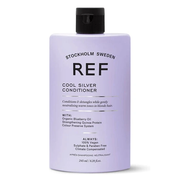 Ref Cool Silver Conditioner 245ml – Tone & Nourish Hair is a specialized hair care product designed to enhance and maintain the vibrancy of blonde, silver, or color-treated hair. Infused with botanical extracts and purple pigments, this conditioner addresses unwanted yellow tones, providing an effective solution for individuals looking to neutralize brassiness while nourishing their hair. Its formulation is particularly beneficial for bleached, naturally lightened, or sun-bleached hair, ensuring a revitalized and healthy appearance.
