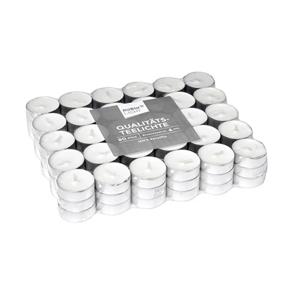 Rubin Licht Tealight Candle White, 4 Hours 90’s
