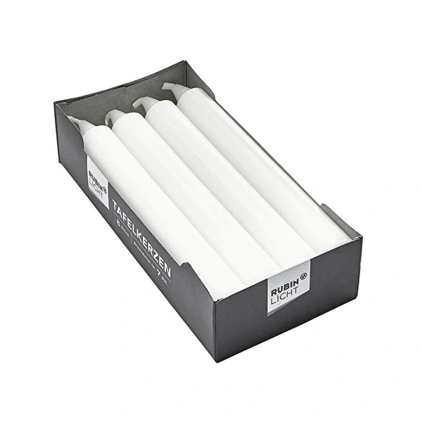 The Rubinlicht candles are pure white, allowing for sophisticated table presentations. Their classic appearance complements any decor style, making them suitable for formal gatherings or casual settings.
