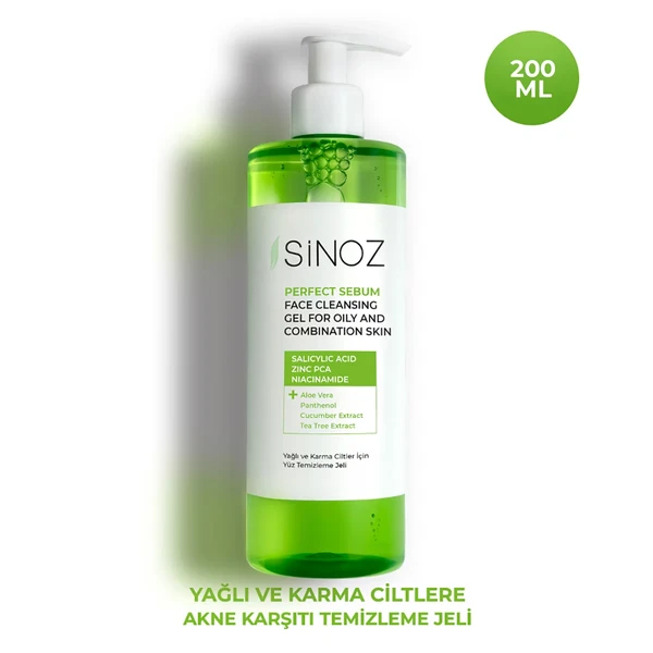 Sinoz Oily And Combination Skin Facial Cleansing Gel 200 ml is a specialized cleansing gel designed for oily and combination skin types. This product effectively removes excess oil, dirt, and makeup residue while supporting pore tightening and preventing the formation of acne and blackheads. Formulated with gentle active ingredients, it cleanses without stripping the skin of moisture or causing dryness, while also providing a soothing barrier against external aggressors.