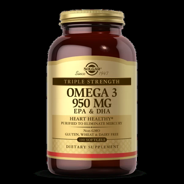 Solgar Omega 3 950 mg Soft Gel Capsules for Heart & Brain Health are a high-quality dietary supplement designed to provide essential Omega-3 fatty acids. This formulation is specifically crafted to support optimal heart and brain function, making it an important addition to a wellness routine. The capsules are easy to incorporate into daily life, promoting overall well-being through targeted nutritional support.