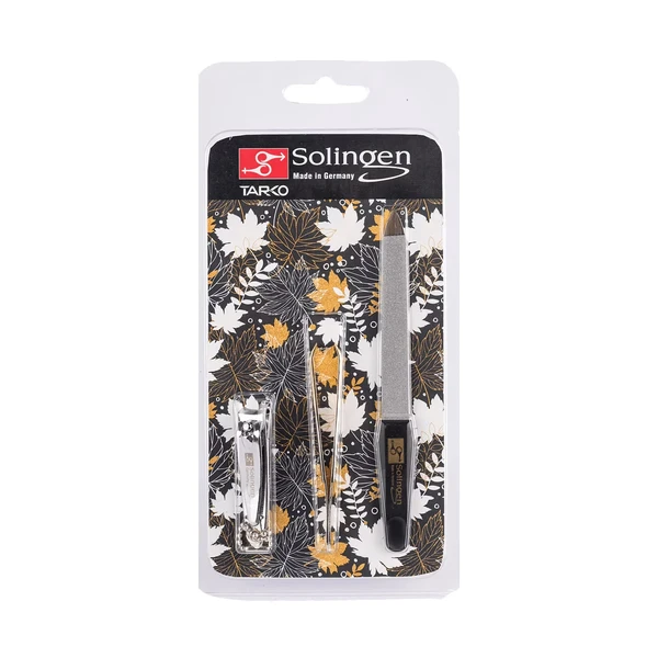 Solingen Care Kit is a comprehensive grooming set designed to meet essential nail care needs. This kit includes a nail clipper, tweezers, and a nail file, all crafted for effective and precise use. Each tool is designed to enhance personal grooming routines, making it easier to maintain well-groomed nails and brows at home or on the go.