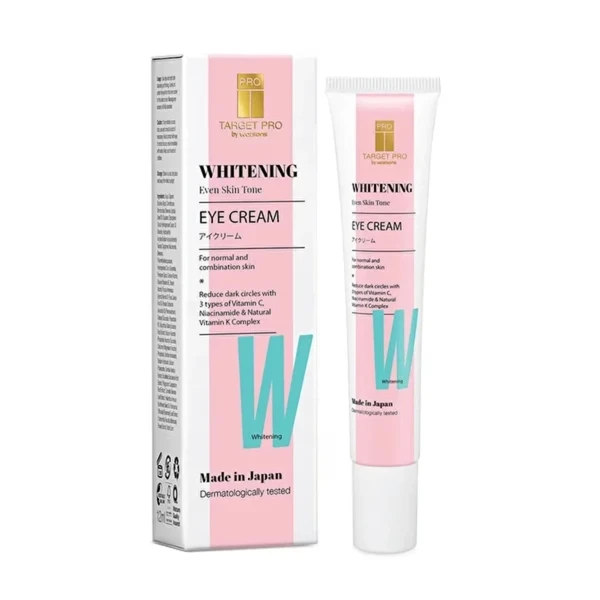 Target Pro By Watsons Whitening Eye Cream 12 ml is a specialized skincare product designed to address common concerns related to the delicate eye area. This cream effectively reduces the appearance of dark circles and puffiness, enhancing overall eye brightness and vitality. With a formulation enriched with three types of Vitamin C, Niacinamide, and a natural Vitamin K Complex, this eye cream is a vital addition to any daily skincare routine, ensuring a refreshed and youthful look.