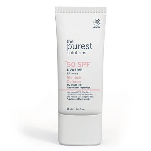 The Purest Solutions SPF50+ Blemish Defense Cream 50ml is a specialized skincare product designed for blemish-prone skin. This cream offers SPF50 protection, providing essential defense against harmful UVA/UVB rays and blue light exposure. Its formulation is tailored to address skin discoloration while delivering hydration, making it a valuable addition to any skincare routine.
