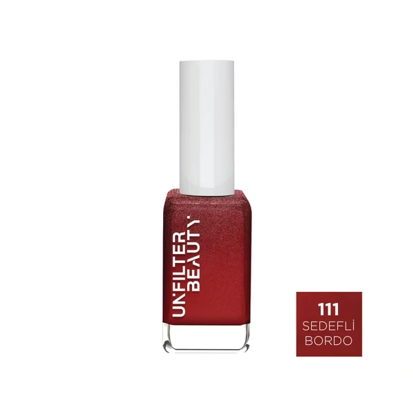 Unfilter Beauty Nail Polish Pearlescent Claret Red 111 is a premium nail polish designed to provide a deep and rich claret red hue with a lustrous, pearlescent finish. This product is essential for those seeking a sophisticated and elegant appearance for their nails. The shimmering formula creates a refined sparkle, enhancing the overall aesthetic of your manicure.