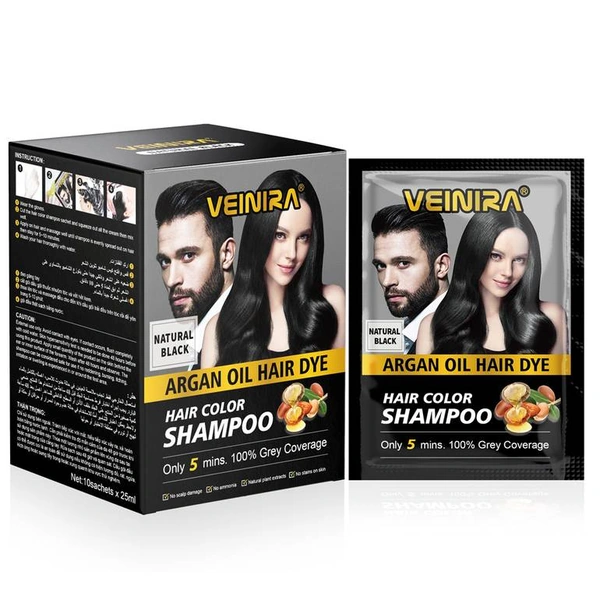 Venera 3-in-1 Natural Black Hair Dye Shampoo with Argan Oil and Aloe Vera (25X10 ml)