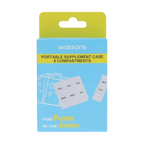 The Watsons Pill Box 8 – Portable Weekly Medicine Organizer is designed to facilitate the organized storage of medications and vitamins. This product is essential for those who manage multiple supplements or medications, ensuring they are kept in a secure and easily accessible manner. Its compact design allows for convenient transport, making it ideal for both everyday use and travel.
