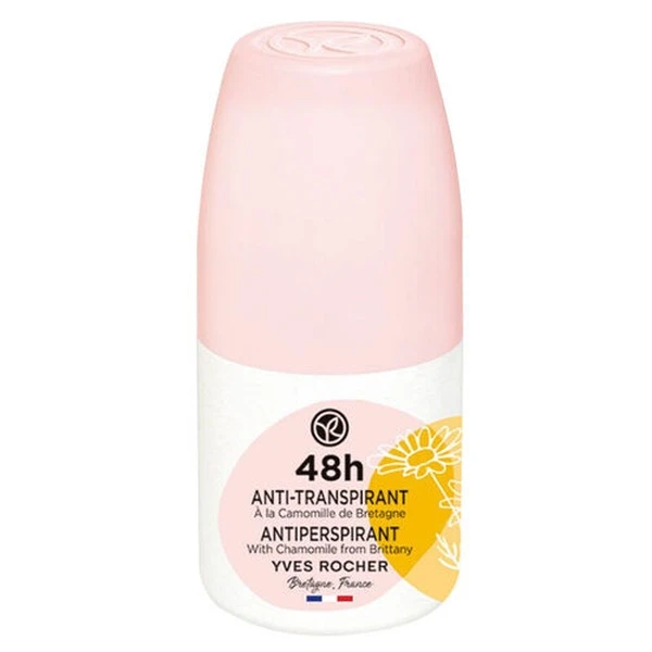 Yves Rocher Chamomile Roll-On Antiperspirant Deodorant 50ml provides effective protection against odor for up to 48 hours. This roll-on deodorant is formulated to deliver reliable antiperspirant benefits while keeping the skin feeling fresh and comfortable.