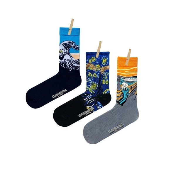 The Carnaval Art Patterned Socks Set features a vibrant assortment of three pairs designed for comfort and style. Crafted from a blend of materials, these socks are suitable for everyday wear. Their unique patterns add a touch of personality to your attire, making them a versatile addition to any wardrobe.