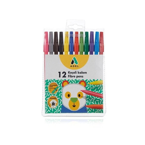 Adel 12-Color Washable Felt Pen Set – Quick-Dry, Durable Ink is a versatile and practical tool designed for a variety of creative applications. This set includes twelve vibrant colors that are perfect for use on paper, cardboard, and wooden surfaces. With features that emphasize ease of use and durability, these felt pens are suitable for both artistic endeavors and educational activities.